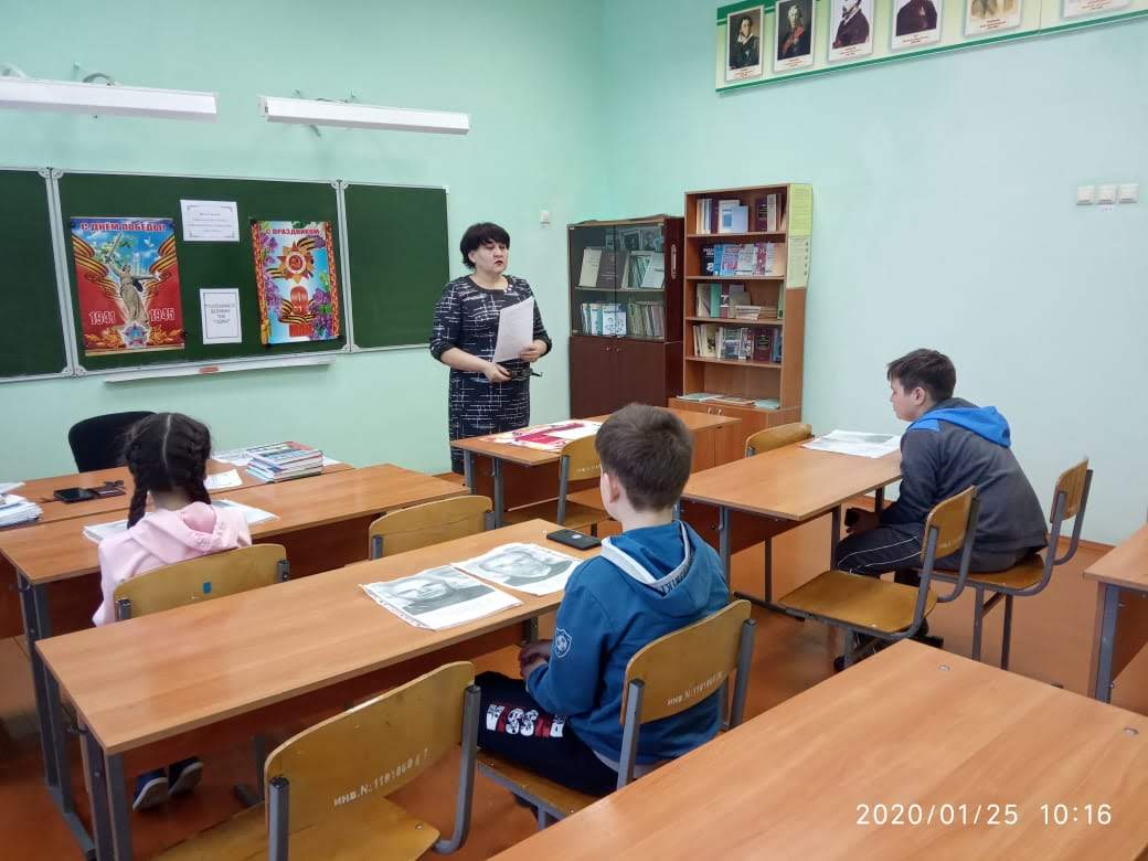 28 января Фазлиахметова И.Г. провела классный час «Вклад советского народа в Победу над фашизмом и милитаризмом во Второй мировой и Великой Отечественной войне»