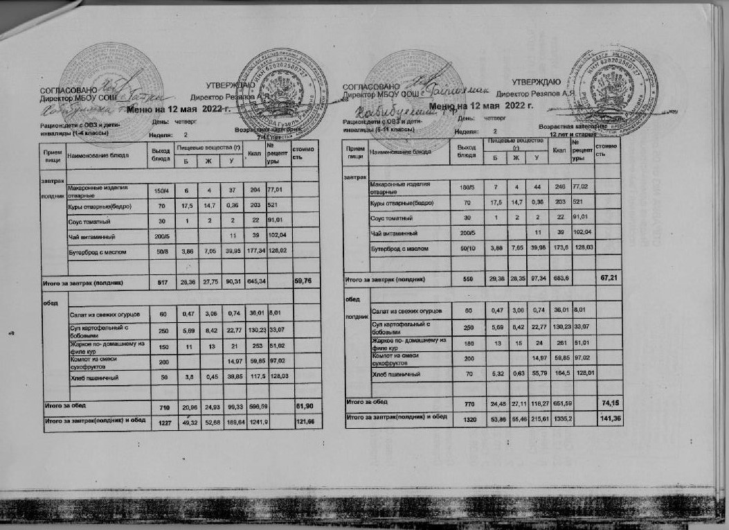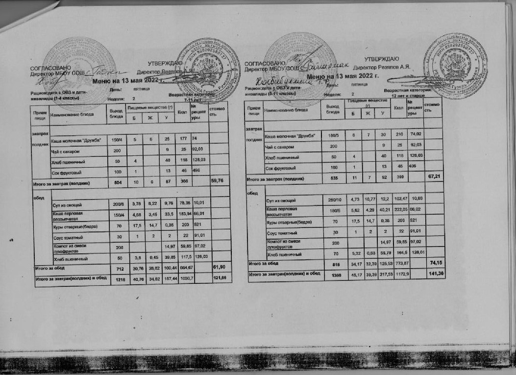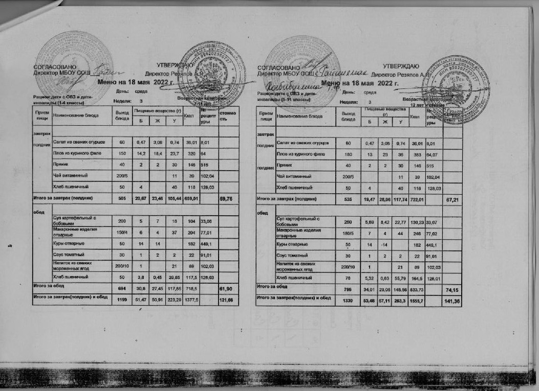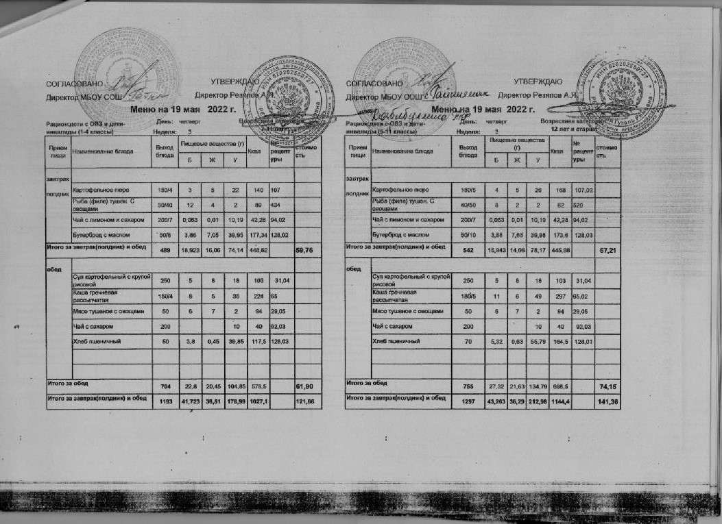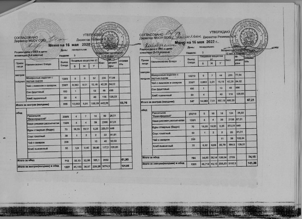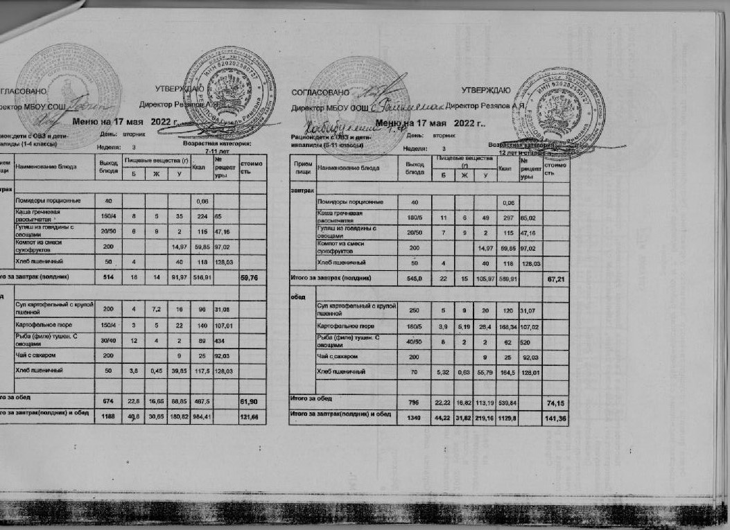Стоимость школьного питания