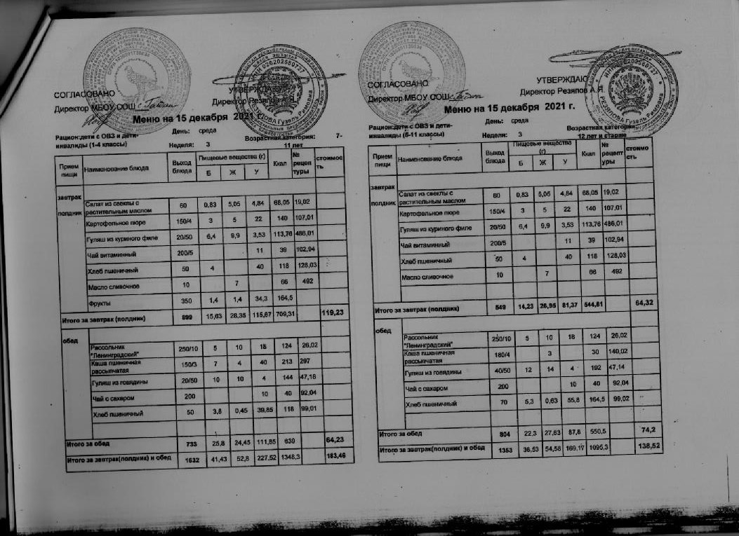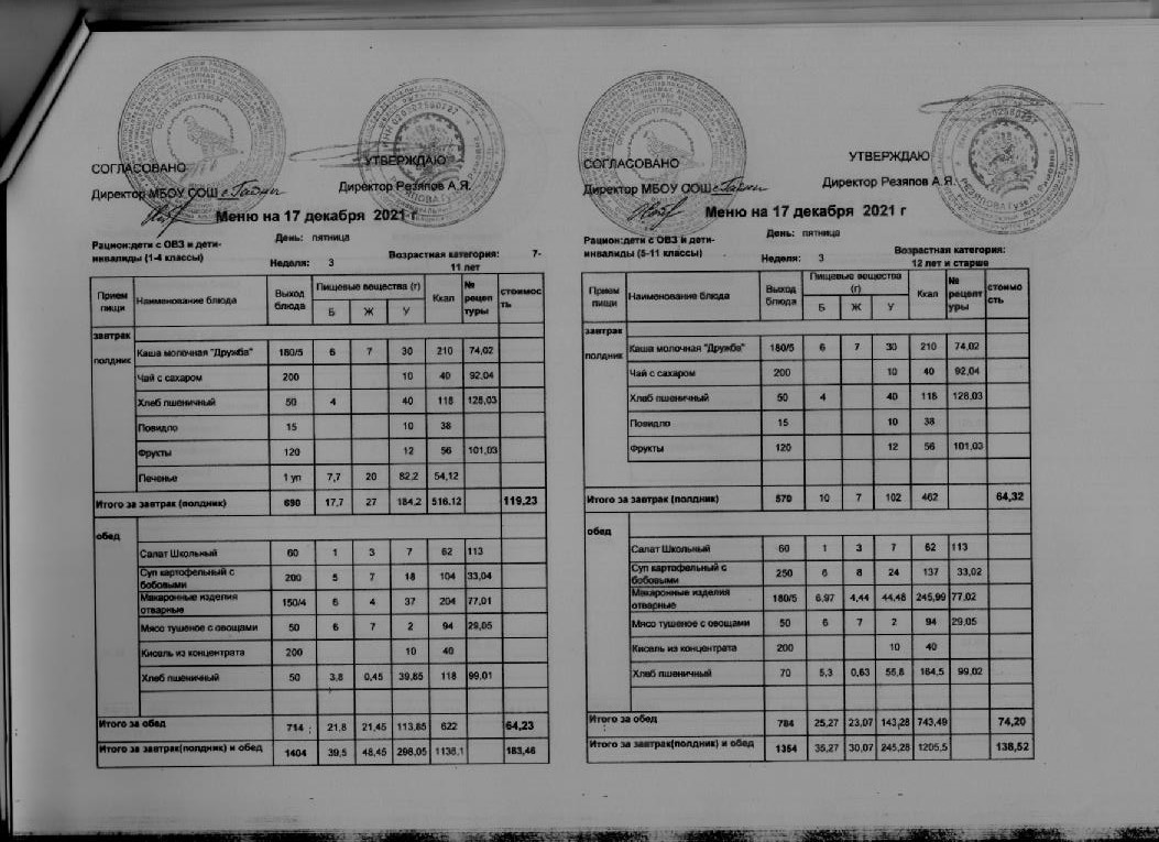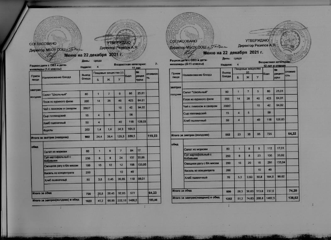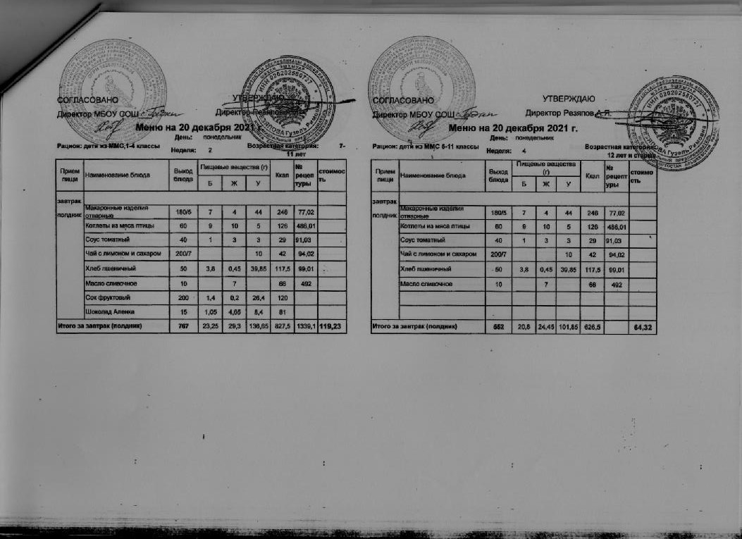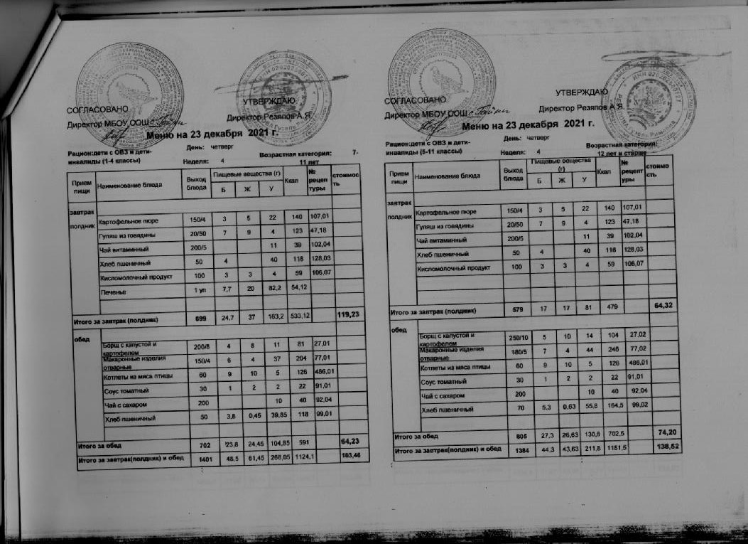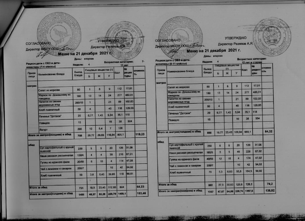 Стоимость школьного питания