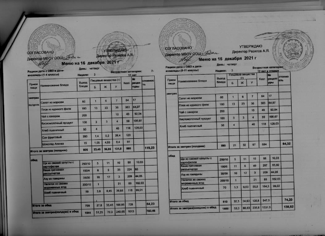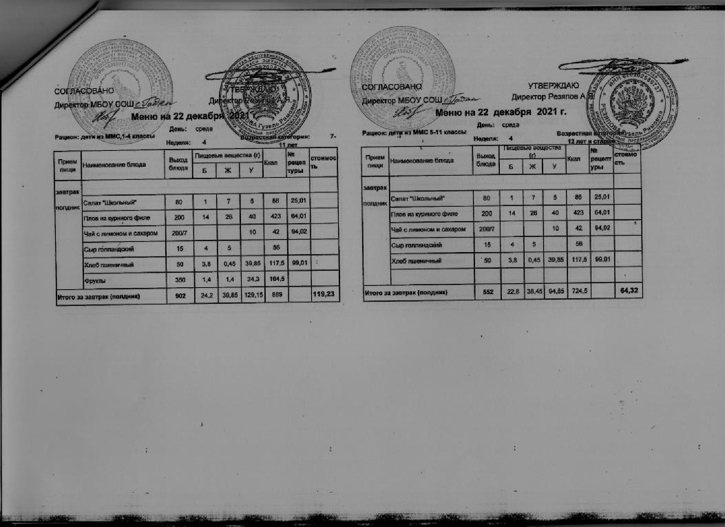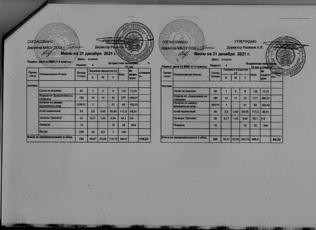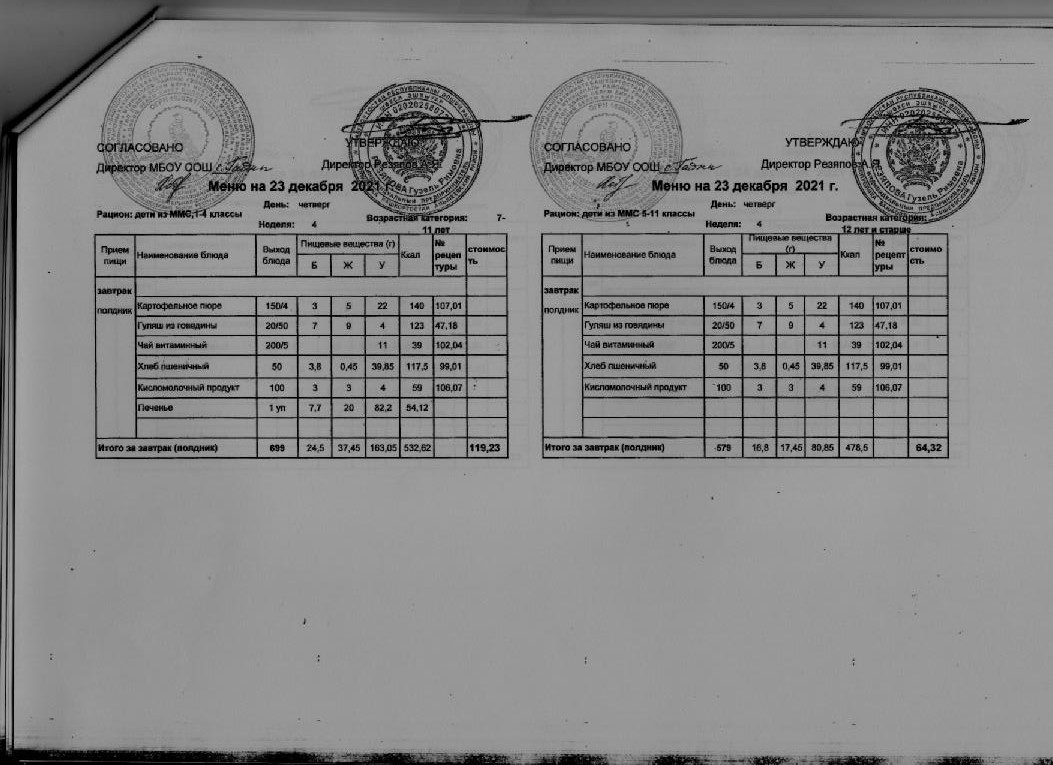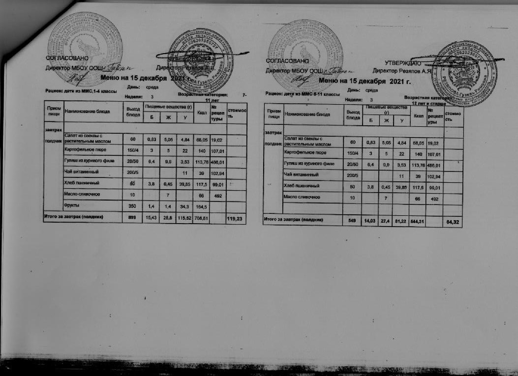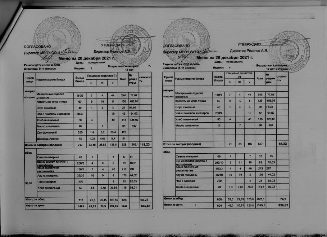 Стоимость школьного питания