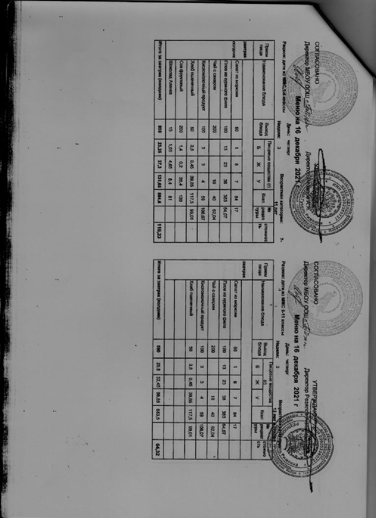 Двухнедельное меню