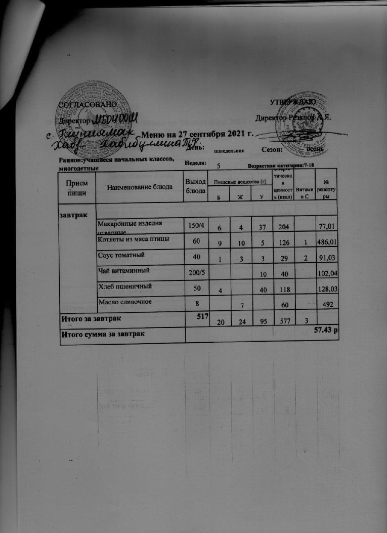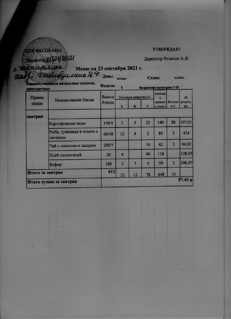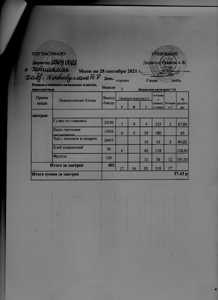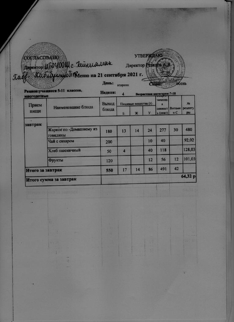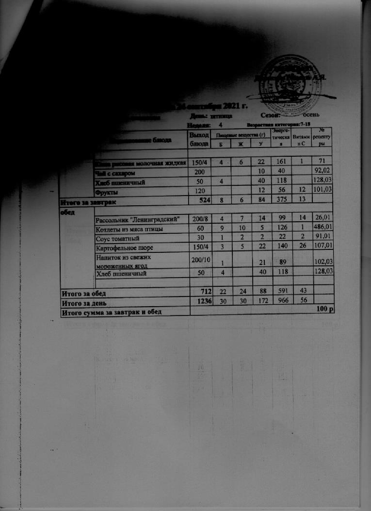 Стоимость школьного питания