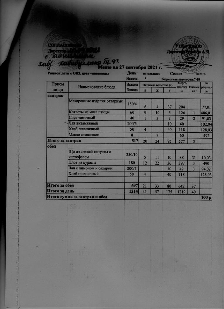 (Обед ОВЗ, и дети инвалиды)